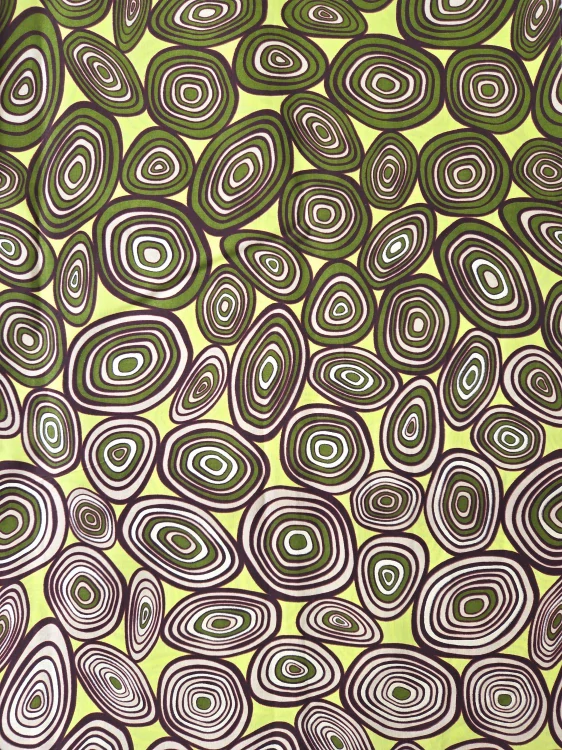 Bavlněná africká látka prémiové kvality i tisku charakteristická pro své pestré barvy a originální motiv. Vyjádřete svou originalitu a individualitu, své pocity i povahu. Látka vhodná pro ušití šatů, sukní i kalhot. V kombinaci s teplákovinou Vás oblékne do krásného a pohodlného kabátku. Lze ji navíc použít i jako potahový materiál, třeba na naše pohankové bochánky a meditační polštáře. Tištěno tradičními západoafrickými kombinacemi voskového tisku na extrémně měkké a odolné bavlněné textilie.