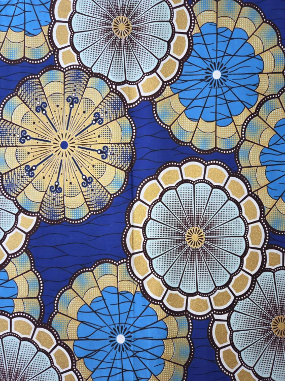 Bavlněná africká látka prémiové kvality i tisku charakteristická pro své pestré barvy a originální motiv. Vyjádřete svou originalitu a individualitu, své pocity i povahu. Látka vhodná pro ušití šatů, sukní i kalhot. V kombinaci s teplákovinou Vás oblékne do krásného a pohodlného kabátku. Lze ji navíc použít i jako potahový materiál, třeba na naše pohankové bochánky a meditační polštáře. Tištěno tradičními západoafrickými kombinacemi voskového tisku na extrémně měkké a odolné bavlněné textilie.