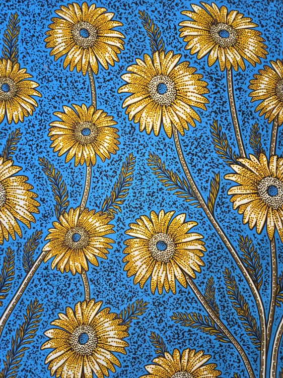 Bavlněná africká látka prémiové kvality i tisku charakteristická pro své pestré barvy a originální motiv. Vyjádřete svou originalitu a individualitu, své pocity i povahu. Látka vhodná pro ušití šatů, sukní i kalhot. V kombinaci s teplákovinou Vás oblékne do krásného a pohodlného kabátku. Lze ji navíc použít i jako potahový materiál, třeba na naše pohankové bochánky a meditační polštáře. Tištěno tradičními západoafrickými kombinacemi voskového tisku na extrémně měkké a odolné bavlněné textilie.