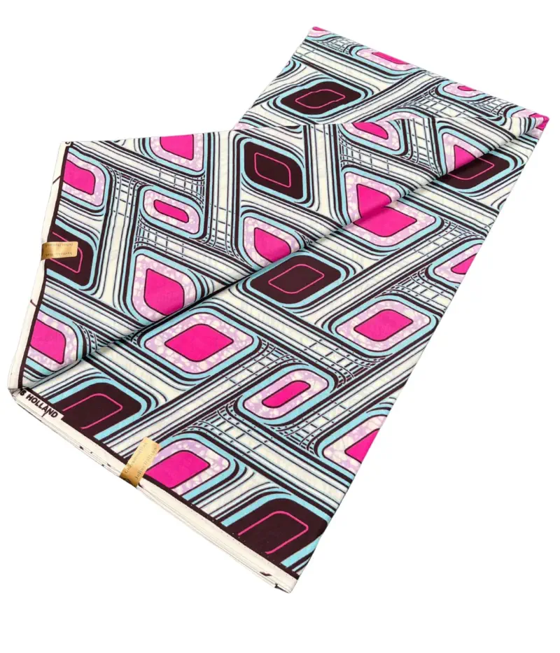 Bavlněná africká látka prémiové kvality i tisku charakteristická pro své pestré barvy a originální motiv. Vyjádřete svou originalitu a individualitu, své pocity i povahu. Látka vhodná pro ušití šatů, sukní i kalhot. V kombinaci s teplákovinou Vás oblékne do krásného a pohodlného kabátku. Lze ji navíc použít i jako potahový materiál, třeba na naše pohankové bochánky a meditační polštáře. Tištěno tradičními západoafrickými kombinacemi voskového tisku na extrémně měkké a odolné bavlněné textilie.