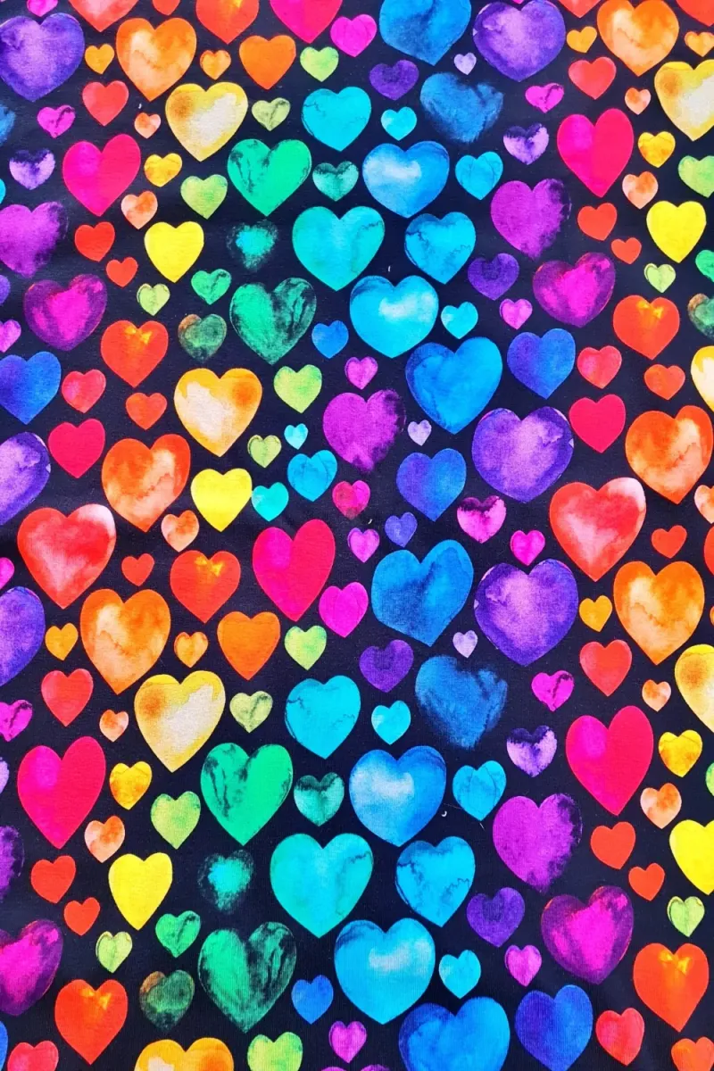 Duhová barevná srdíčka, bavlněný úplet